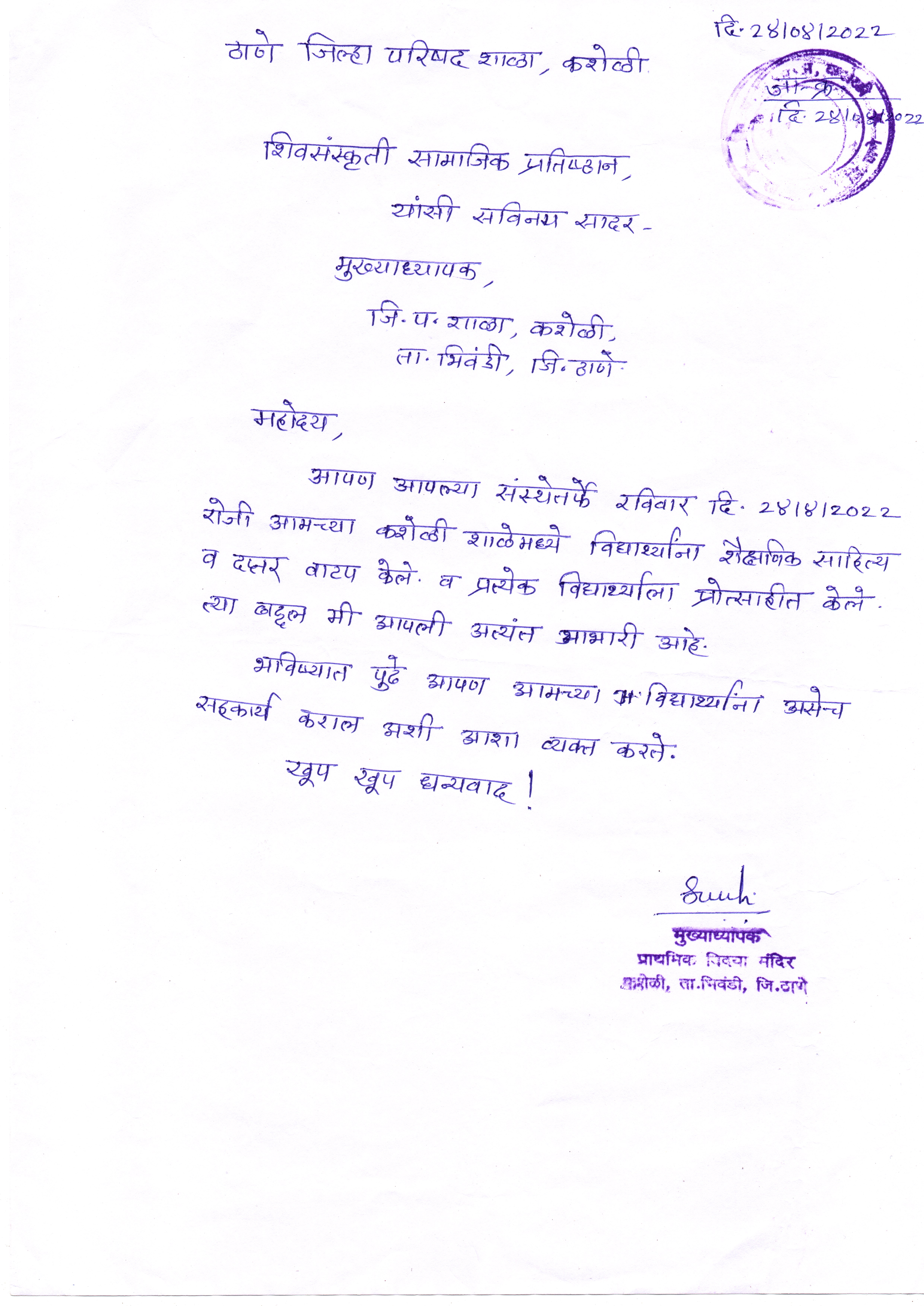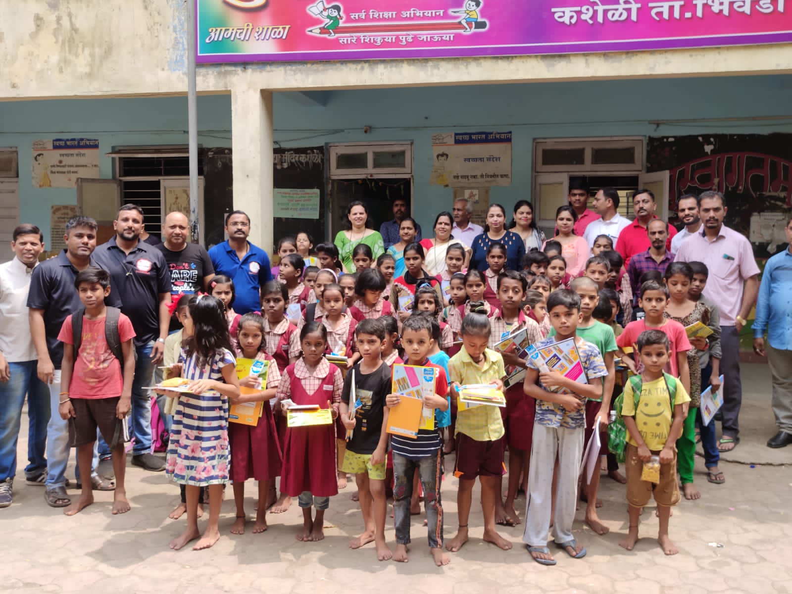 जिल्हा परिषद शाळा, कशेळी येथील विद्यार्थ्यांना लहान व मोठ्या वह्या, पट्टी, पेन्सिल, खोडरबर, शार्पनर, चित्रकलेच्या वह्या वस्तूंची मदत देण्यात आली. शिक्षिका समिधा झेंडे मॅडम यांचे मार्गदर्शनाखाली हा कार्यक्रम पार पडला. यावेळी राहुल अर्बन पतसंस्थेचे ठाणे शाखा व्यवस्थापक श्री गणेश चौधरी यांचा जन्मदिन त्यांच्या कुटुंबियांच्या उपस्थितीत साजरा करण्यात आला. ट्रस्टच्या या शैक्षणिक उपक्रमासाठी त्यांचे विशेष सहकार्य लाभले. या शैक्षणिक उपक्रमामध्ये ट्रस्टचे सन्माननीय देणगीदार व हितचिंतक श्री सचिन फर्डे, श्री रुपेश सपकाळे, श्री सिद्धेश भिंगारे, श्री निलेश कोळेकर, श्री अमोल औटी, वकील श्री सुरेश साटम, श्री अजित नवरत, श्री. देवानंद ईशी, सौ प्रमिला ईशी, वकील शलाका साटम, श्री महेश चोरगे, श्री. गौतम परिहार, श्री. अजय जयस्वाल यांनी सहभाग घेतला. यावेळी छत्रपती श्री शिवरायांच्या प्रतिमेचे पूजन करून मुलांना शैक्षणिक साहित्य वह्या-पुस्तके यांचे वाटप करण्यात आले.