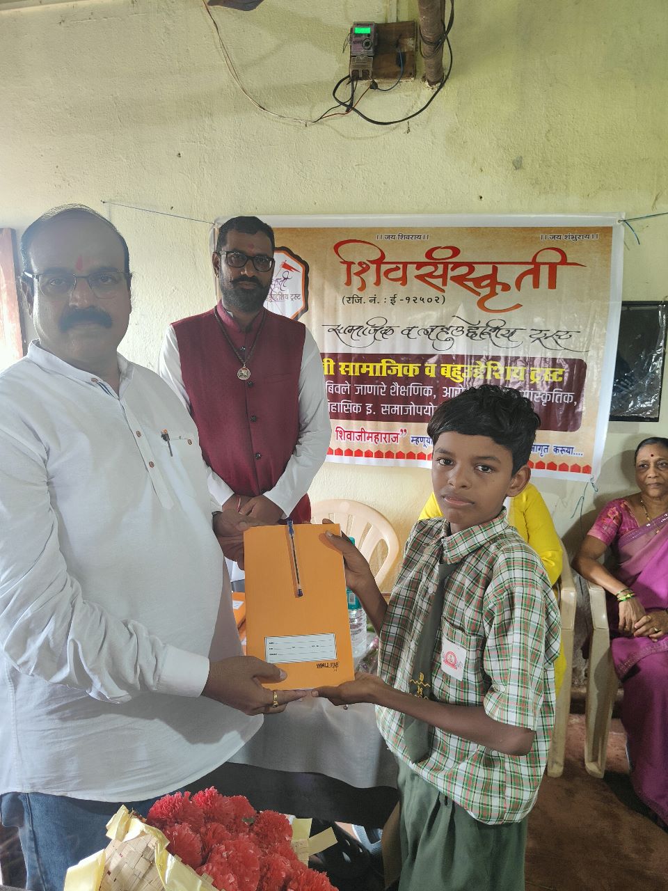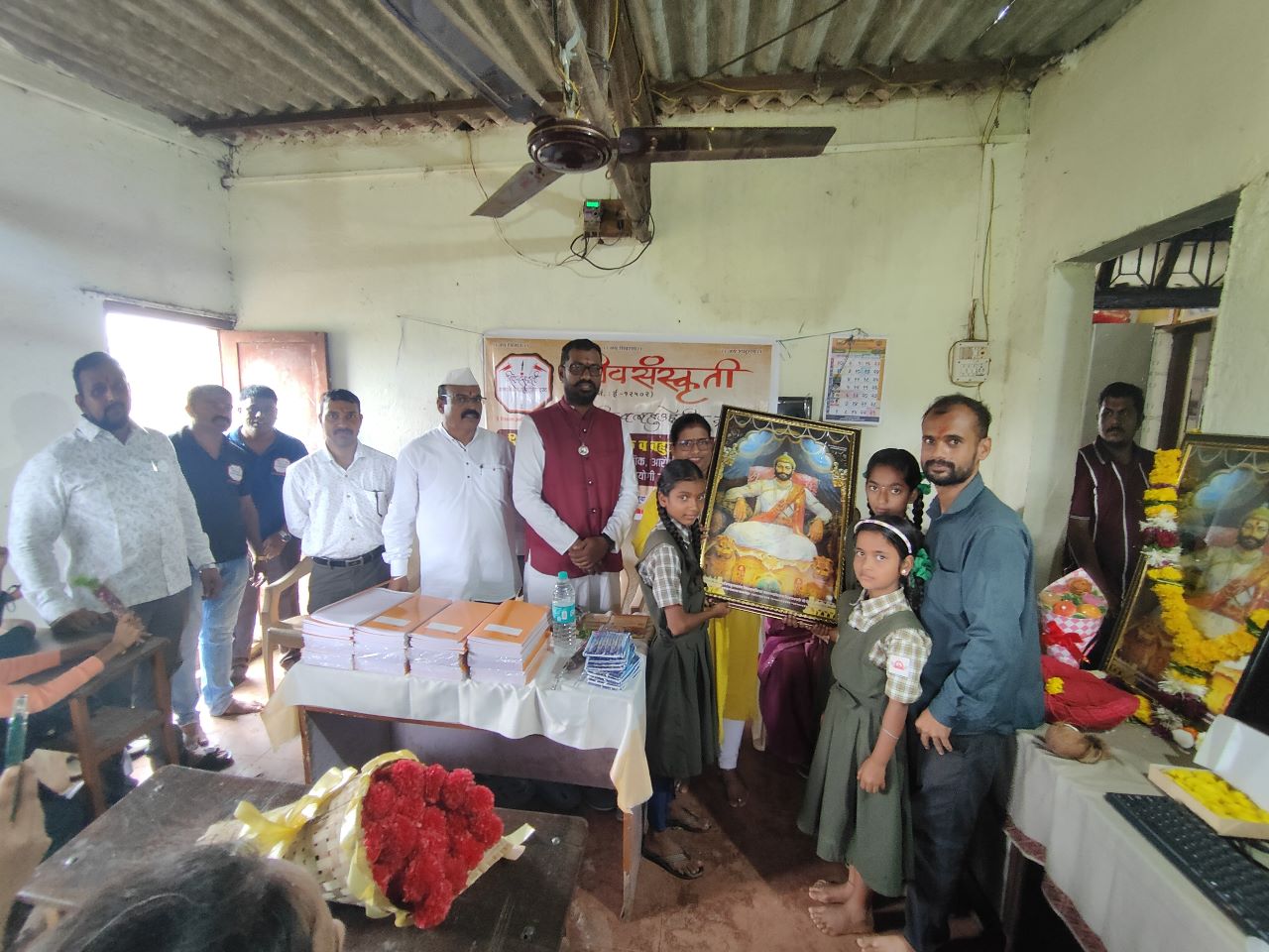शिवसंस्कृती सामाजिक व बहुउद्देशीय ट्रस्ट मार्फत ज्ञानाई माध्यमिक विद्यालय, धामणी, ता. पनवेल जि. रायगड येथील डोंगर पट्टयामधून, जेथून शाळेमध्ये येण्यासाठी व्यवस्थित रस्ताही नाही अश्या ठिकाणाहून ऊन, वारा, पाऊस यांना तोंड देत शिक्षण घेण्यासाठी येणाऱ्या आदिवासी विभागातील गरीब व गरजू विद्यार्थांना संगणकाचा संपूर्ण संच, लॉंग बुक व इतर शैक्षणिक साहित्य वाटप आणि नागरी सुविधेपासून वंचित असलेल्या ग्रामस्थांना कपडे व इतर मदत पुरविण्यात आली. कार्यक्रमाच्या सुरुवातीला राजश्री शिवबा विचार प्रसारक मंडळ (ट्रस्ट) चे राष्ट्रीय अध्यक्ष शिवसंत श्री. विजयदादा खिलारे, शिवसंत सौ. नुतनआई खिलारे , शिवसेना महाराष्ट्र वाहतूक सेना (महाराष्ट्र राज्य) चिटणीस मा. श्री. बापू ढेंबरे आणि नवी मुंबई महानगर पालिकेचे वरिष्ठ लिपीक श्री. सचिन सोनावणे यांच्या हस्ते छत्रपती श्री शिवरायांच्या प्रतिमेचे पूजन करून आरती करण्यात आली, मान्यवरांचे पुष्पगुच्छ देऊन स्वागत करण्यात आले आणि शाळेसाठी तसेच मान्यवरांना शिवरायांची तेजोमय प्रतिमा अर्पण करण्यात आली. त्यानंतर शाळेला संगणकाचा संपूर्ण संच मदत म्हणून देण्यात आला आणि सर्व विद्यार्थ्यांना शैक्षणिक साहित्य व खाऊचे वाटप करण्यात आले. या उपक्रमासाठी श्री. सचिन सोनावणे यांनी मुलांसाठी वह्या उपलब्ध करून दिल्या, तसेच ठाणे येथील सुप्रसिद्ध सिटी समोसा चे संस्थापक श्री. चंद्रशेखर वाघदरे यांनी या उपक्रमासाठी सर्व विद्यार्थ्यांना विनामूल्य अल्पोपहार उपलब्ध करून दिला. श्री. प्रदीप गेले यांनी संगणक, शैक्षणिक व इतर साहित्य घेऊन जाण्यासाठी रिक्षा उपलब्ध करून दिली. यावेळी शिवरत्न श्री. योगेश खिलारे यांच्याकडून विद्यार्थ्यांना मार्गदर्शन करण्यात आले. शिवरायांचे विचार आपल्या दैनंदिन जिवनात कसे अंगिकारावे, तसेच दैनंदिन जिवनातील या खडतर प्रवसामध्ये आपला विकास कसा साधावा, शिवचरित्राच्या माध्यमातून आपले भविष्य कसे उज्वल करावे, आपल्या पुढील वाटचालीमध्ये कोणत्या चांगल्या गोष्टींचे अनुकरण करावे याबद्दल विशेष असे मार्गदर्शन केले. ही शैक्षणिक मदत उपलब्ध करण्यासाठी ट्रस्टला सहकार्य केलेले सर्व देणगीदार व हितचिंतक यांचे शाळा प्रशासनाकडून आभार मानण्यात आले.